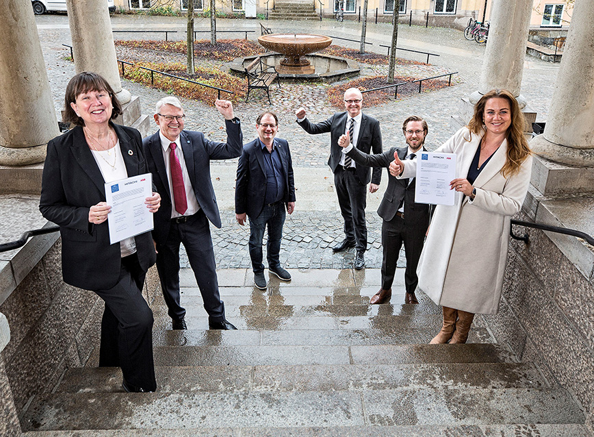 KTH och Hitachi ABB Power Grids är nu strategiska partner. Fr v Sigbritt Karlsson, Mikael Östling och Johan Blaus från KTH och Jenny Larsson, Filip Elveling och Thomas Krysén från Hitachi ABB Power Grids t h. (Foto: Håkan LIndgren)