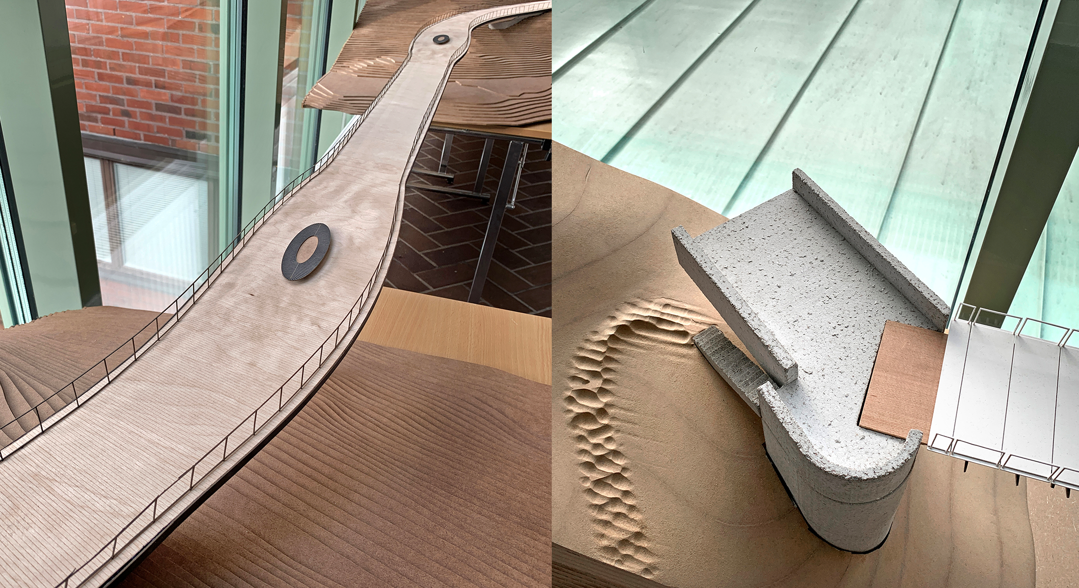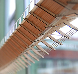 – Studentprojektet har gått ut på att deltagarna fått utveckla egna träbaserade bro-koncept. Först har de tagit fram tredimensionella, detaljrika skisser, sedan har de byggt modeller av broarna i skala 1:30. Målet har varit att konstruera en gång- och cykelbro i Norrköping över Motala ström, och det är tänkt att en av modellerna ska förverkligas om cirka två år.