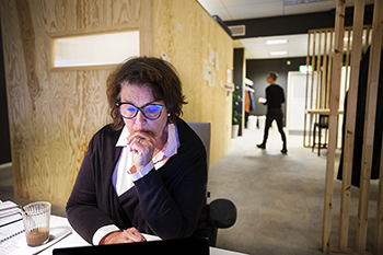 – Ett bra alternativ till att jobba hemifrån. Här får jag både lugn och ro och kan träffa lite folk, säger hon.