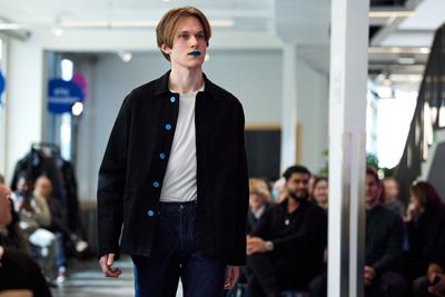 Modevisning med kläder av tyger tillverkade av vindruvsskal eller återvunna jeans.