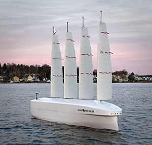 Reducerade utsläpp sker genom att låta fartyget drivas av vindkraft istället för förbränningsmotorer. Fyra stora segel som vart och ett är hundra meter högt ska fånga upp vinden och föra fartyget framåt. En resa över Atlanten ska ta tolv dagar, att jämföra med åtta som ett fartyg idag gör samma färd på.