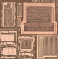 Ett chip med integrerade kretsar i kiselkarbid. (Foto: KTH)