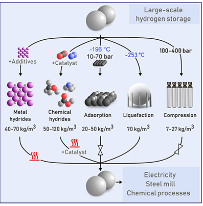 Alternativen kan vara att omvandla vätgas till en annan kemisk form, exempelvis metanol, metan eller ammoniak eller som flytande organisk.