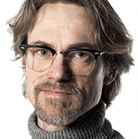 Porträttfoto av David Nilsson, föreståndare för KTH Vattencentrum. Han bär glasögon och en stickad polotröja.
