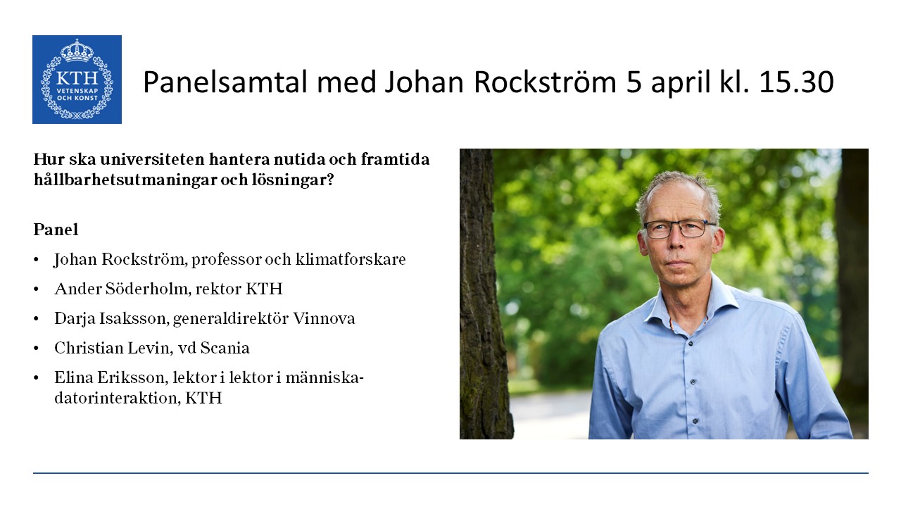 Panelsamtal med Johan Rockström, mottagare av KTH:s stora pris år 2021. Samtalet spelades in på KTH 5 april 2023.
