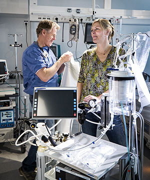 Extrakorporeal membranoxygenering (ECMO) är en livräddande terapi som via en artificiell lunga kan ta vid då respirator och läkemedel inte längre räcker till. Metoden används för att kritiskt sjuka patienter ska garanteras adekvat gasutbyte och/eller cirkulation (hjärtfunktion). Lisa Prahl Wittberg leder tillsammans med Mikael Broman (KS) en studie tillsammans för mer skonsam, säker och effektiv behandling.