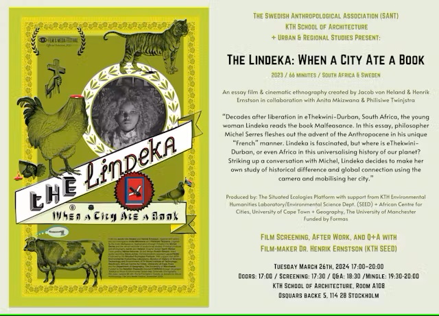 The Lindeka: When a City ate a Book adresserar miljökrisen genom de aktiva kvarlevorna av koloniseringen. Filmen är skapad av Jacob von Heland och Henrik Ernstson i samarbete med Anita Mkizwana and Philisiwe Twinjstra.
