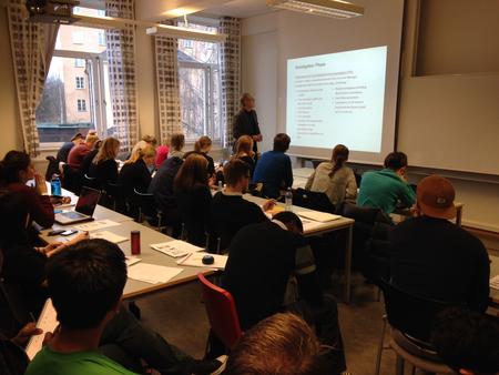 The Photo was taken during the lecture on 19/11. Johan Berg, construction manager and a member of the board of directors at Forsen Projekt talked about the project Liljeholmstorget. The aim of lecture was mainly to clarify the project management settings and dynamics.