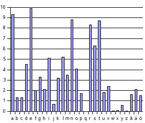 Alla dessa chiffer är dock enkla att knäcka för Eve, som har statistik över hur ofta varje bokstav förekommer i det aktuella språket. Så här ser det ut för svenska: