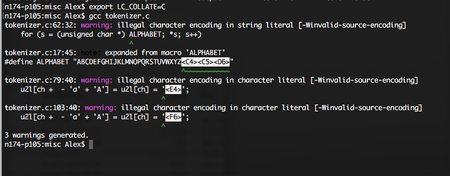 När jag kompilerar tokenizer.c får jag dessa varningar: