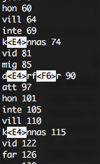 När jag sedan använder mig av den kompilerade a.out och lagrar detta till en fil genom kommandot ./a.out < korpus > output så ser jag följande i output filen: