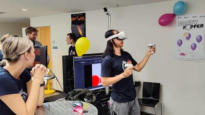 KTH and InfraVis invite you to experience the future of interaction in virtual, augmented and mixed realities (VR, AR and XR). Explore the projects created by the students of Advanced Graphics and Interaction in the Visualization Studio VIC. The projects include live music performances in VR and IRL, collaborative VR maze solving, tabletop sheep herding, and VR space exploration. Most impressive, come and interact with the young developers themselves! Visit us all day on Friday, December 16 from 15:00 to 19:00, 2022 at the Visualization Studio VIC (directions).