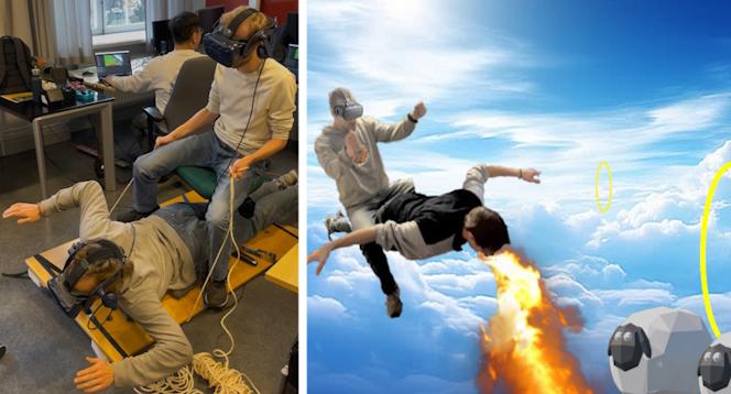Welcome to try Dragon Trainer, a cooperative dragon flying simulator in virtual reality. Soar through the sky with your friend, burn sheep, fly through obstacles, or simply explore the landscape from the perspective of a dragon and its rider.