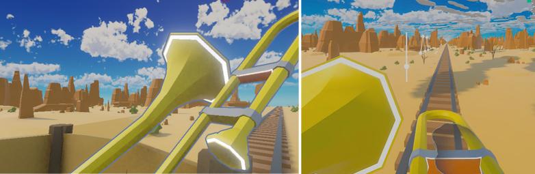 In Trombone Trolley you play as Trolley Trombone riding his trombone powered rail trolley to travel through the desert of the wild west. Try your hand at playing the trombone in a virtual reality environment and see how well you can play, and how far along the rail you can get.