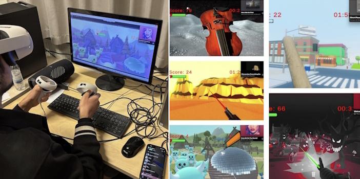 This project is a VR and Music Driven Game: one player selects a Spotify song, and the other experiences a VR world that dynamically changes based on that song’s genre and energy. As the music shifts, the VR player’s environment, post-processing effects, enemy spawns, and difficulty adjust in real time. This creates a unique interactive experience where one player directly controls the other’s gameplay through music.