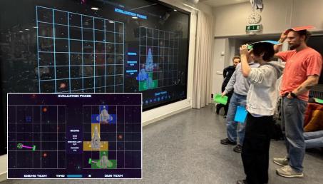 Ever wanted to be a ship? Now you can! Grab your friends and enemies and join us for a real life battleship experience (in space!). Each round, cameras detect players' movements to place the ships in the game. Players can then select their target location via relative hand positioning, then fire on the other team. Good luck defeating the enemy!