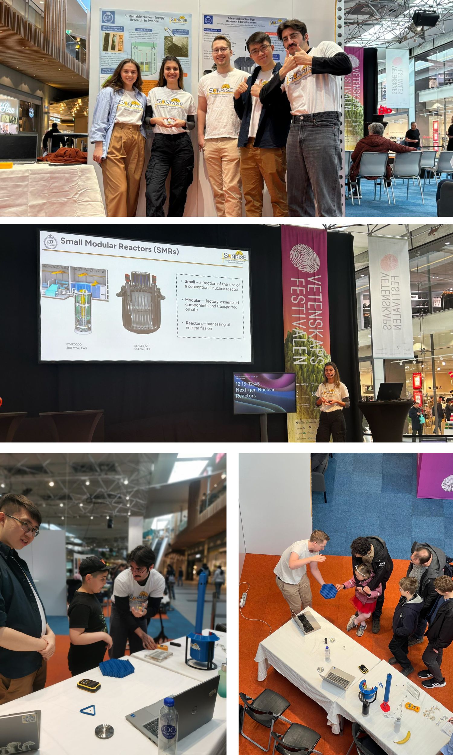 Excellent job by Maria Giamouridou, who gave an impeccable presentation about the development of lead-cooled fast reactors. Congratulations to Daria Kolbas, Fredrik Dehlin, Kin Wing Wong, and Eloi Pallarès Abril for showcasing the amazing work done at the SUNRISE Centre to such a wide range of people, from children curious about the taste of uranium to professors from Chalmers University of Technology!