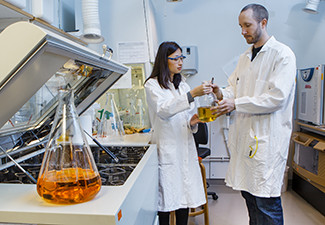 Kemi Vår forskning och undervisning är mycket varierad men enas av det molekylära angreppsättet. Vi jobbar med viktiga forskningsfrågor som har stor relevans för energi, material, miljö och hälsan. Avdelningar Glykovetenskap Organisk kemi Tillämpad fysikalisk kemi Yt- och korrosionsvetenskap Teoretisk kemi och biologi