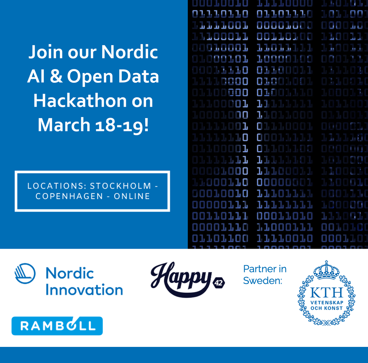 Publicerad 2022-02-04Hackathonet hålls av Ramboll, Happy42 och Nordic Innovation med Kungliga Tekniska högskolan som partner i Sverige.