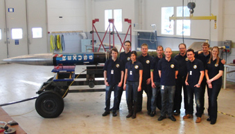 LAPLander student team in front of Rexus 8 rocket at Esrange.