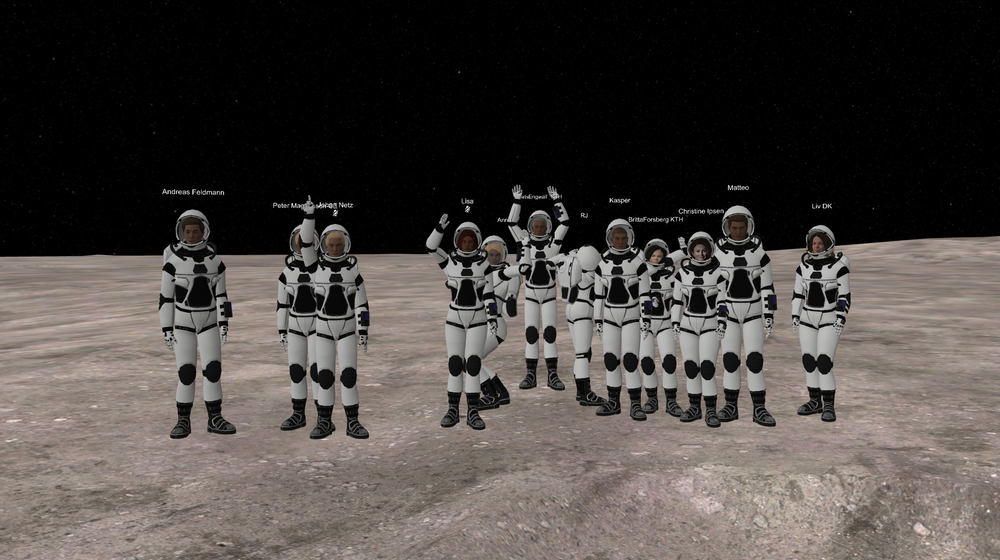 Några begränsningar fanns inte på ScAIEMs VR-mingel. Deltagarna träffades på en fiktiv ö i havet med sol och vacker utsikt. Alla hade fått skapa sin egen avatar från ett galleri av hårfärger, kläder etc, eller ladda ned ett porträttfoto till sin avatar. Dessutom försågs alla deltagare namnlappar och vilket universitet man kom ifrån.