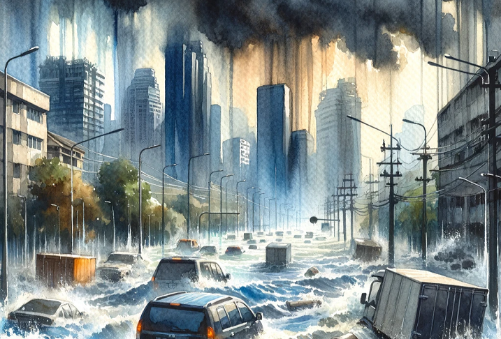 AI-genererad bild av extrema väderevents. Frågad av David Nilsson